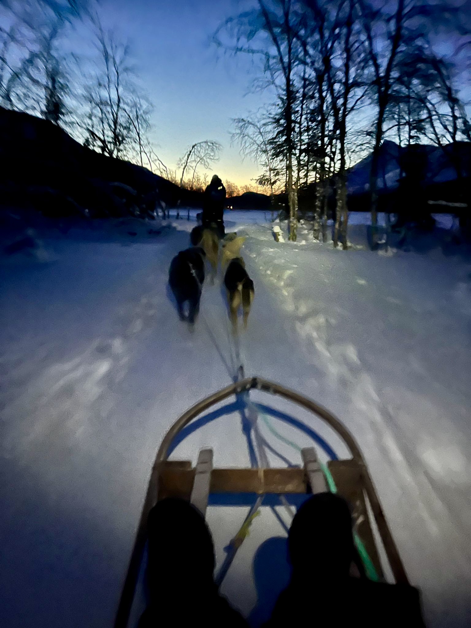 Nach einem gemütlichen Frühstück im Hotel ging es gegen Mittag los in die Umgebung von Tromsø, wo uns zahlreiche Schneeaktivitäteten erwarteten. Mein ganz persönliches Highlight war die Fahrt mit einem Hundeschlitten. Wir erhielten eine kurze Einweisung in den richtigen Umgang mit den Hundeschlitten und schon geht die Fahrt durch die verschneite Winterlandschaft los. Ein tolles Erlebnis!