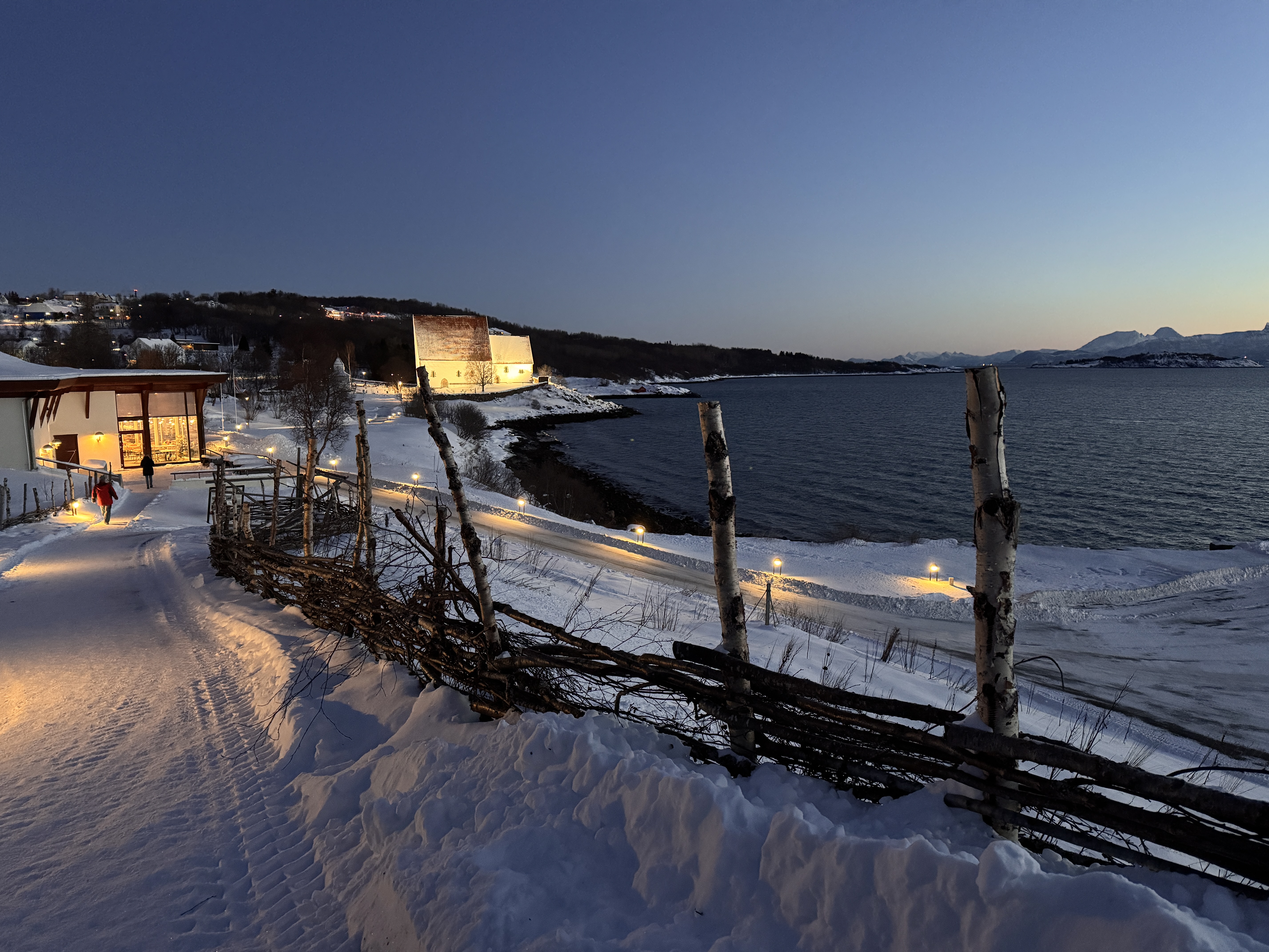 Los ging es per Reisebus am Hafen von Harstad. Erster Besichtungspunkt war die Kirche von Trondenes, wo wir an einer Führung und einer kurzen Andacht teilnahmen. Anschließend besuchten wir das Trondenes Historische Zentrum und den mittelalterlichen Hof, der Einblicke in das Leben auf einem typischen nordnorwegischen Bauernhof im 13. Jahrhundert vermittelt. Die Weiterfahrt erfolgte inklusive Fotostopps und Fährfahrt über den Gulfesfjord. Aufgrund einer Bus-Panne gingen wir dann aber erst am Nachmittag im Hafen von Stokmarknes wieder an Bord und nicht - wie eigentlich geplant - in Sortland. Dank der guten Organisation von Havila war aber auch das kein Problem.