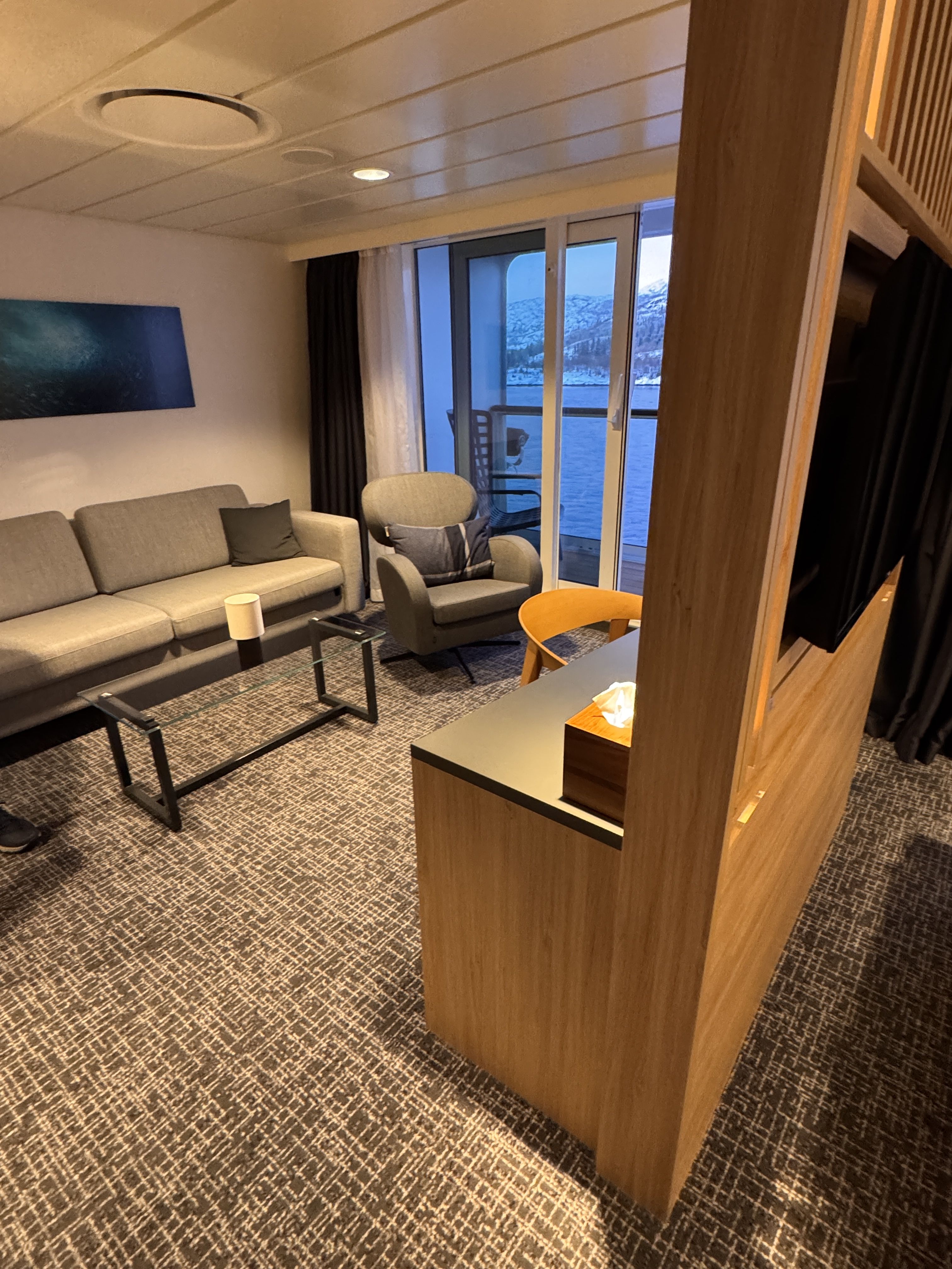 Besselt von den vielen unvergesslichen Erlebnissen des Tages fuhren wir am späten Abend in die Stadt zurück, wo wir kurz vor Mitternacht auf die MS Havila Polaris eincheckten.