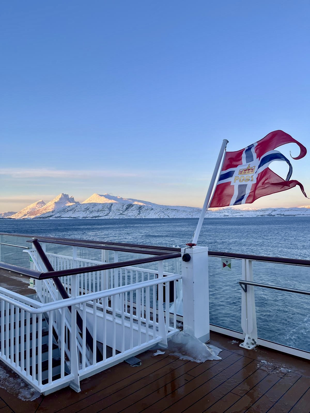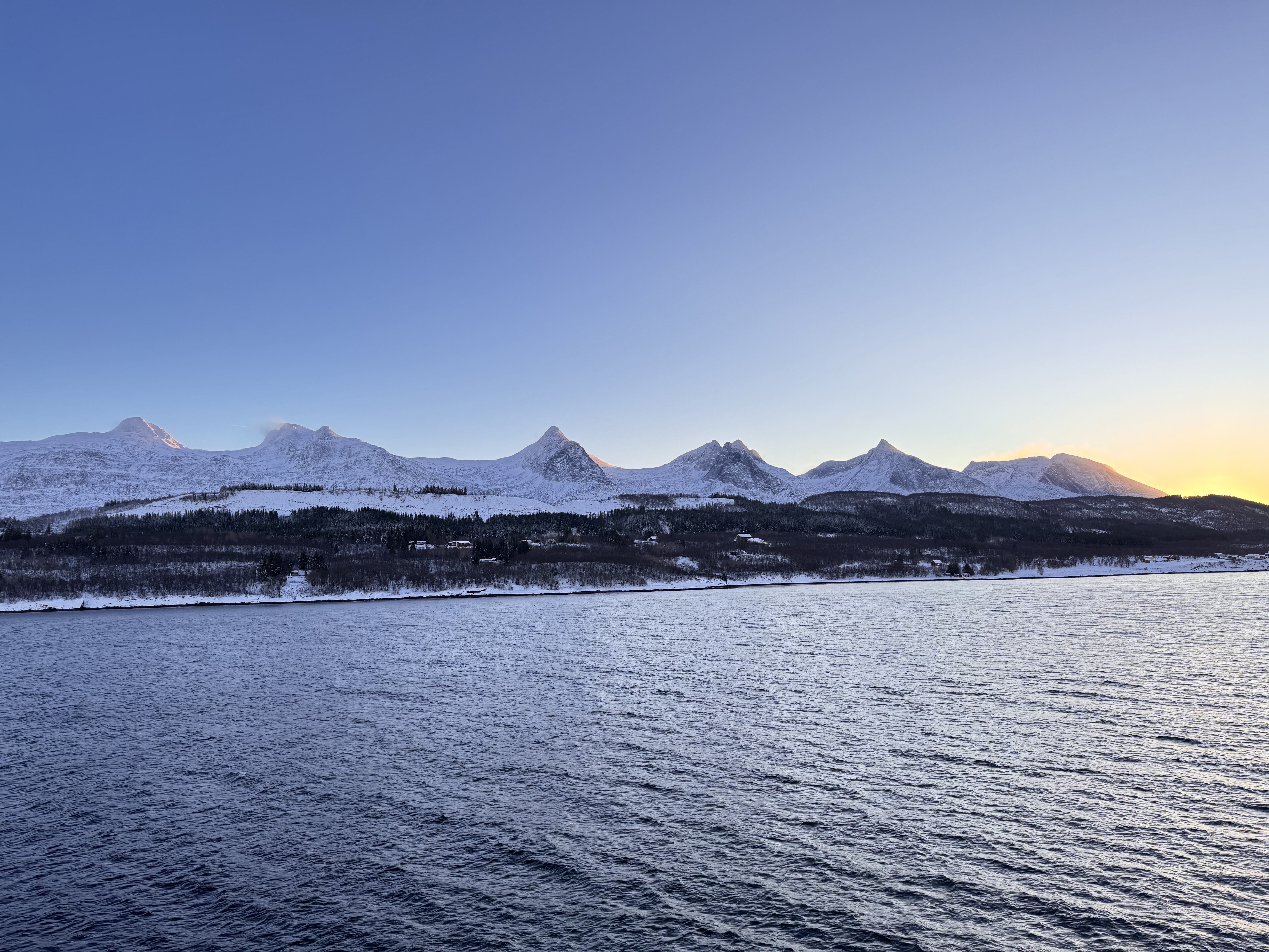 Am Morgen passierten wir den nördlichen Polarkreis. Dann stand die reizvolle Helgelandsküste auf dem Fahrplan und die MS Havila Polaris machte Halt in den Küstenorten Nesna, Sandnessjøen und Brønnøysund. Fahrt durch den UNESCO-geschützten Vega-Archipel und entland der Gebirgskette der "Sieben Schwestern". Ein phantastisches Erlebnis! Von Brønnøysund aus war dann für den späten Nachmittag noch eine Ausflug inklusive Wanderung zur legendäre Felsformation des „Torghatten“ geplant. Aufgrund der Schneefälle in der Nacht zuvor, konnte dieser dann aber leider nicht stattfinden.