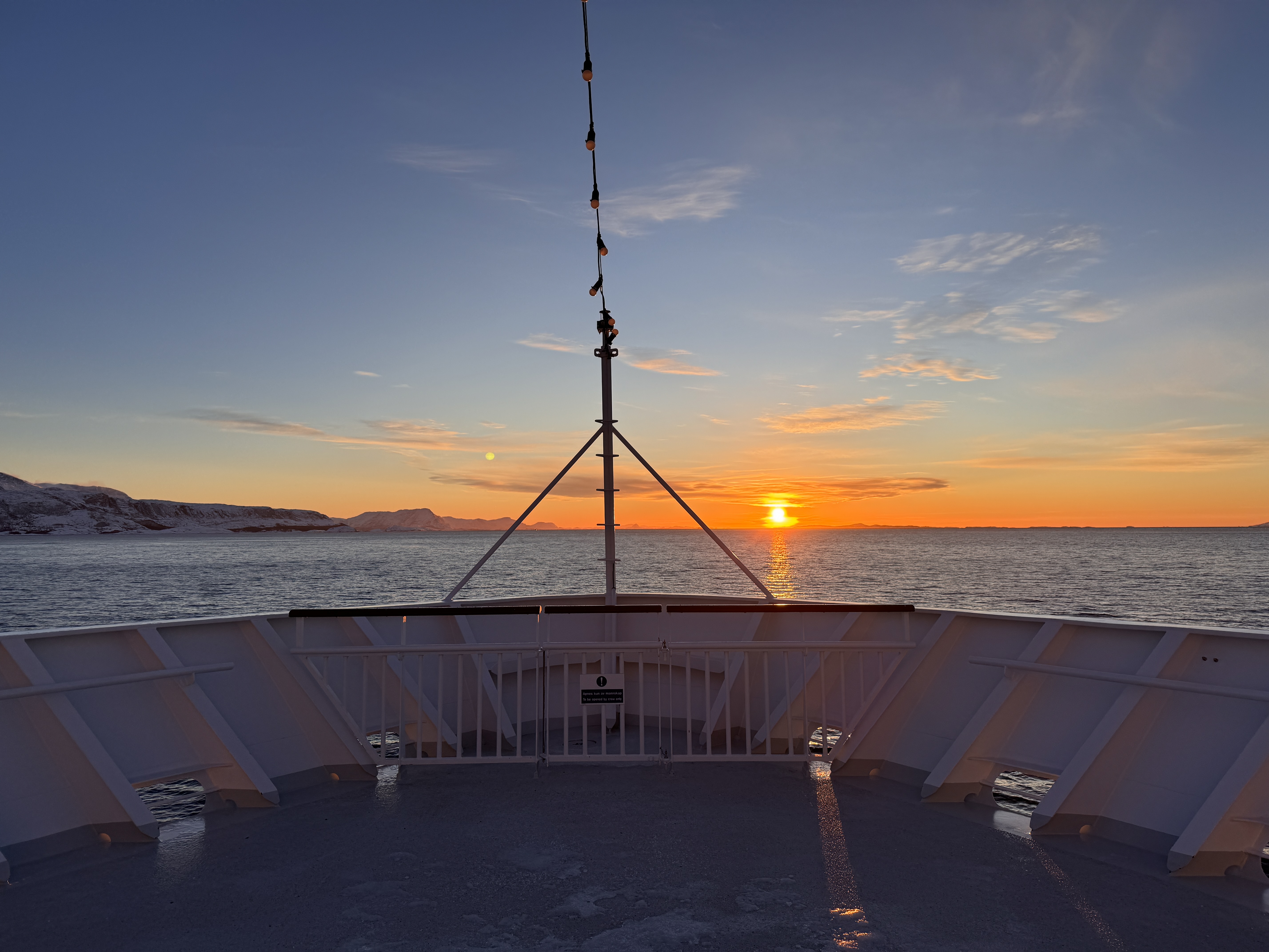 Die Inselgruppe der Vesterålen und Lofoten standen heute auf dem Fahrplan. Zunächst führt die Fahrt durch die eindrucksvolle Meerenge Risøyrenna nach Sortland, dem Hauptort der Vesterålen. Die Weiterfahrt erfolgt durch den Raftsund, der die Inselwelten der Lofoten und Vesterålen miteinander verbindet, nach Svolvær.